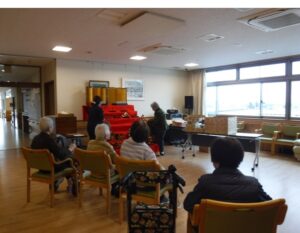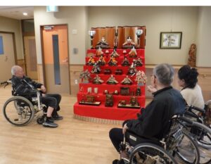 利用者の皆さまと一緒にひな人形を飾る時間は、準備のひとときから楽しみなもの。