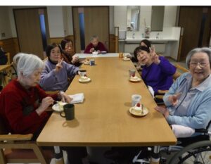 おやつには、春らしい彩りのケーキをご用意。甘い香りに包まれた、笑顔あふれるティータイムとなりました。