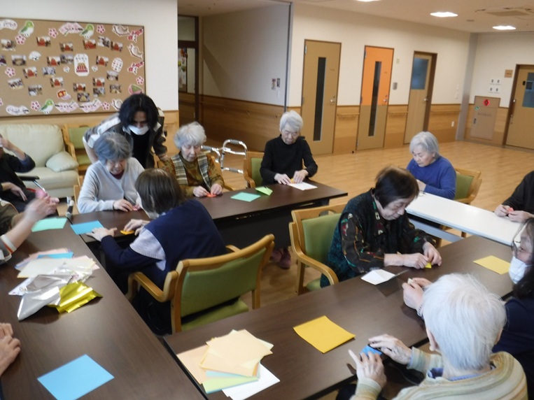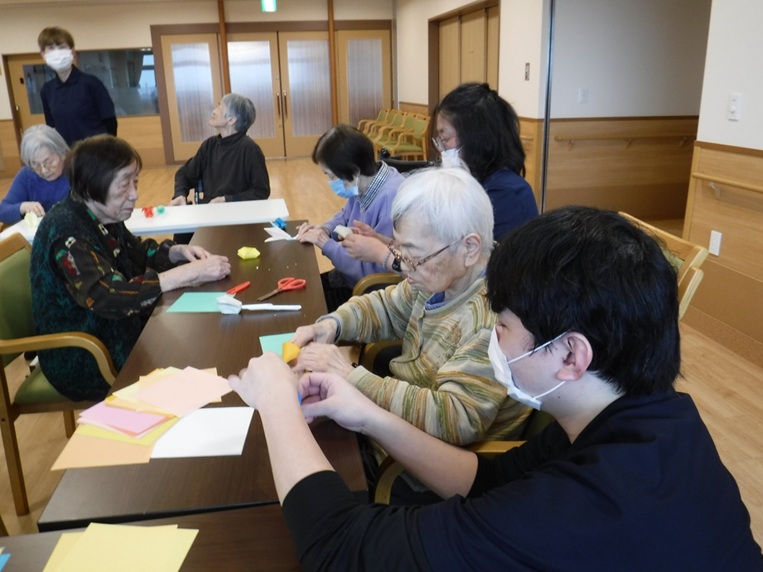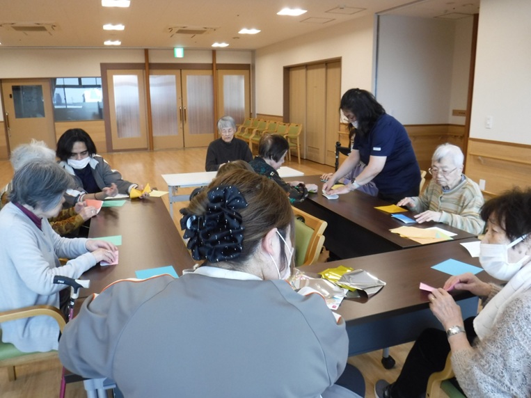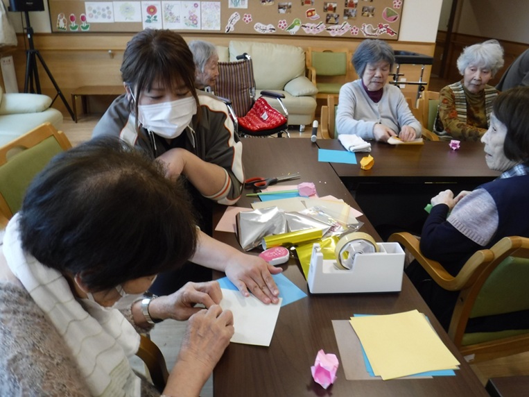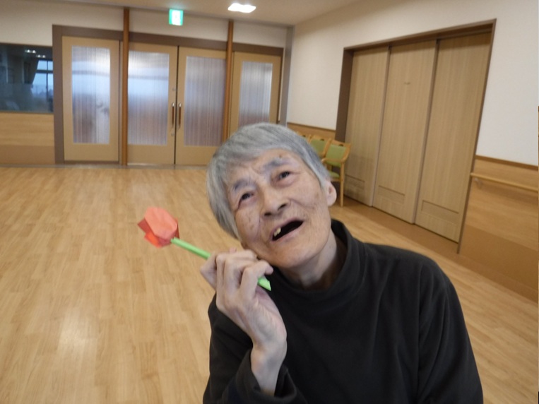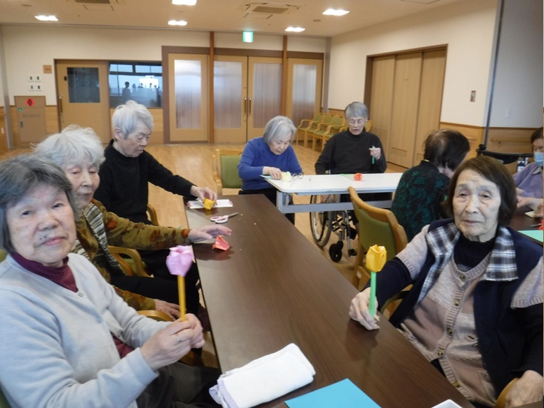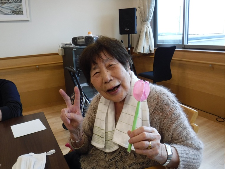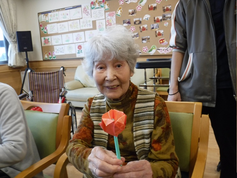 今回は折り紙をしましたが、チューリップの花を折りながらみなさん童心にかえった様にかわいらしい笑顔を見せて下さいました!(^^)!