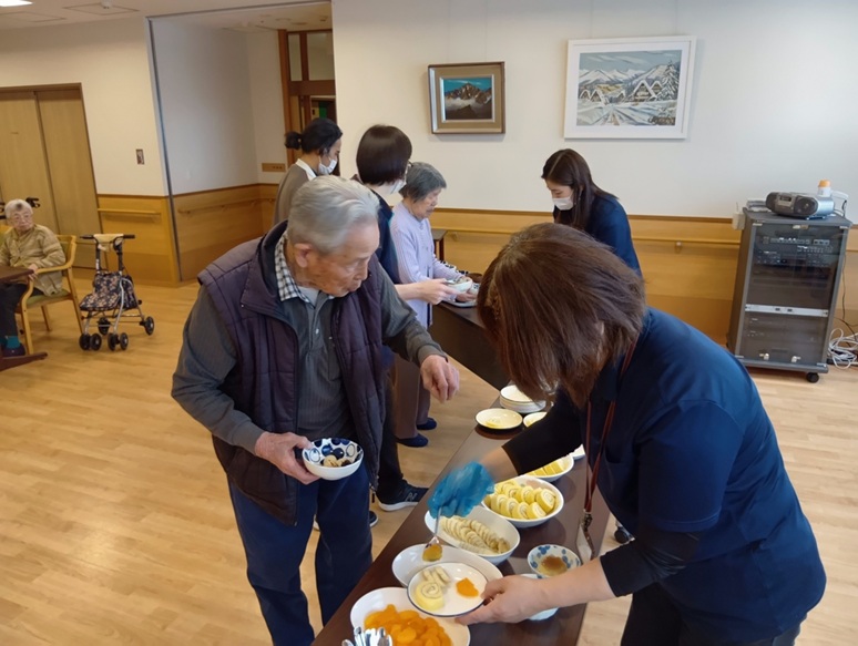 グループホーム2ユニット合同でおやつレクリエーションをしました(^^♪