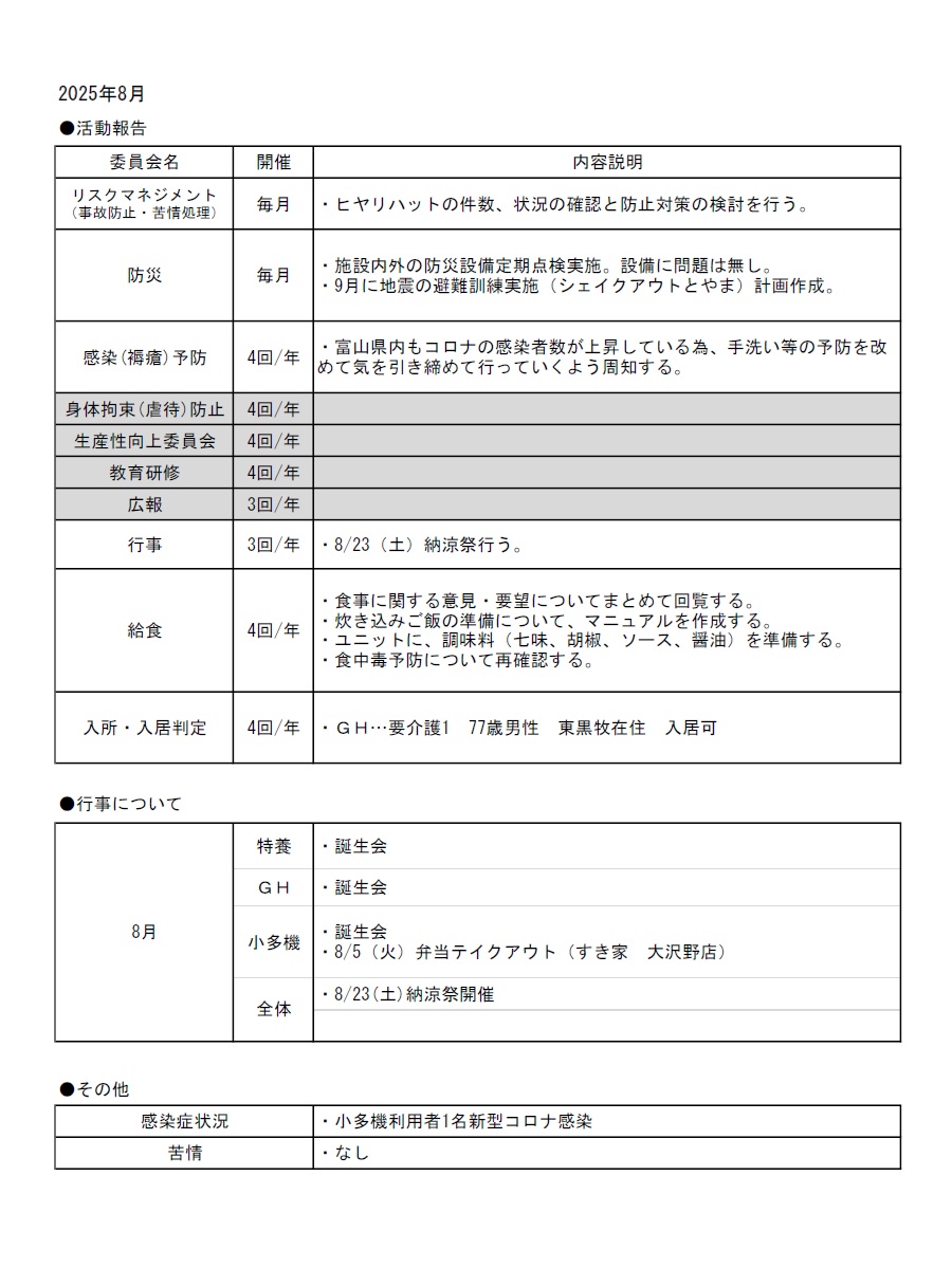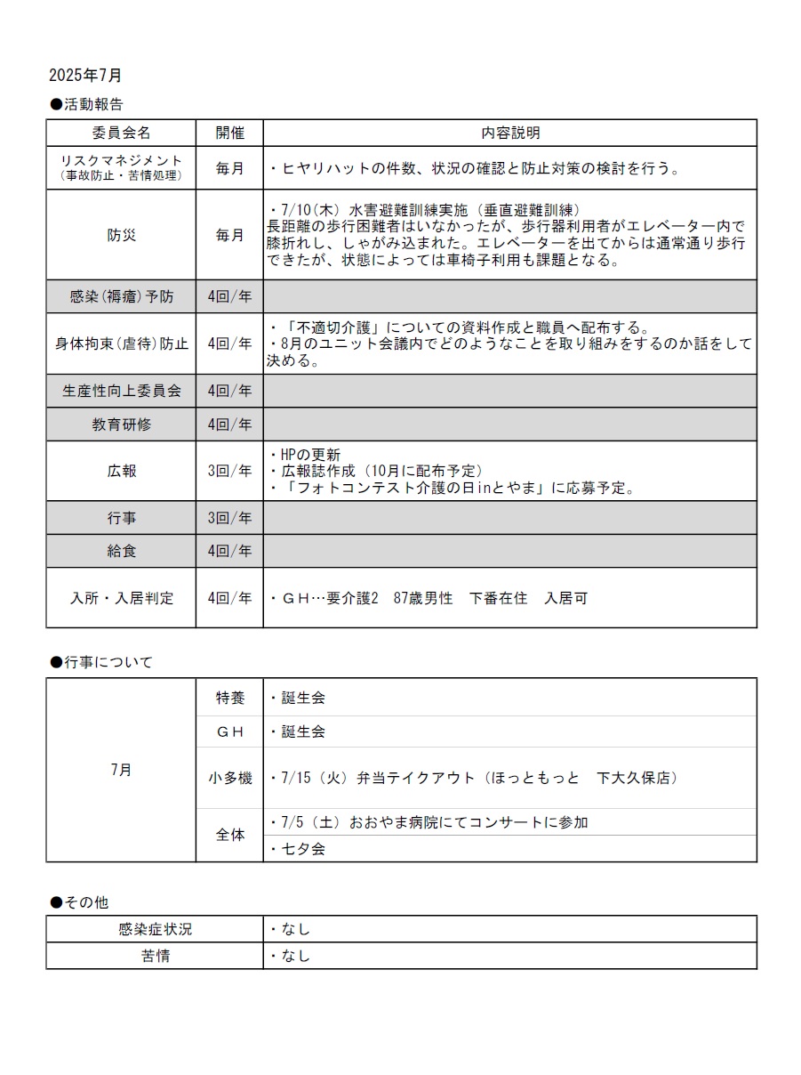 「2025年度 第1回 運営推進会議記録」を公開しました